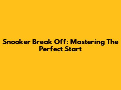 Snooker Break Off: Mastering The Perfect Start