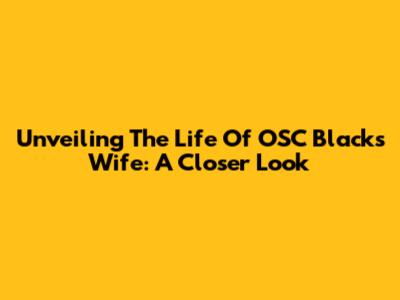 Unveiling The Life Of OSC Black's Wife: A Closer Look