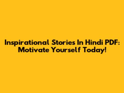 Inspirational Stories In Hindi PDF: Motivate Yourself Today!