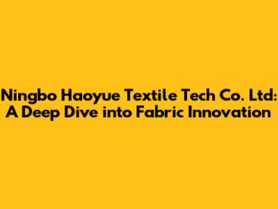 Hey everyone! Today, we're diving deep into the world of textiles, specifically focusing on Ningbo Haoyue Textile Tech Co. Ltd. If you're into fabrics, innovation, or just curious about how things are made, you're in the right place. We're going to explore what makes this company tick, their products, and what sets them apart in the competitive textile industry. Ready to get started? Let's go!