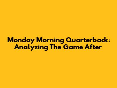 Monday Morning Quarterback: Analyzing The Game After
