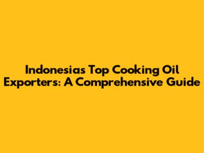 Indonesia's Top Cooking Oil Exporters: A Comprehensive Guide