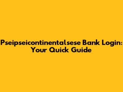 Pseipseicontinentalsese Bank Login: Your Quick Guide