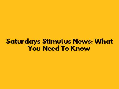 Saturday's Stimulus News: What You Need To Know