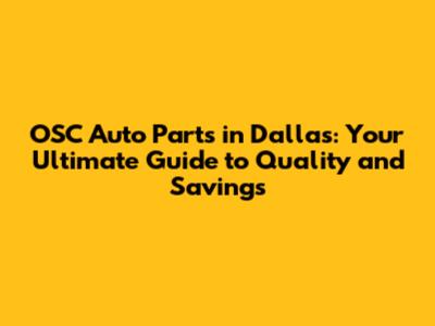 Hey there, gearheads and DIY enthusiasts! If you're cruising around Dallas and your car's giving you the side-eye, you're probably on the hunt for some top-notch auto parts. And if you're looking for quality, affordability, and a hassle-free experience, then you've likely stumbled upon OSC Auto Parts. This guide dives deep into everything you need to know about OSC Auto Parts in the Dallas area, covering their offerings, why they're a great choice, and how you can make the most of your shopping experience. We're talking everything from finding the right parts to getting the best deals, so buckle up and let's get started!