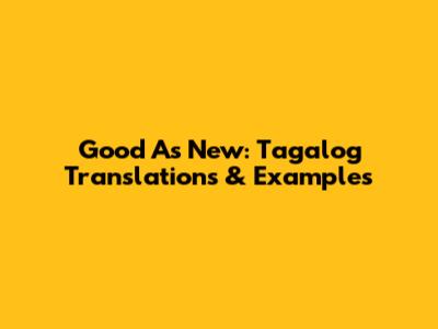 Good As New: Tagalog Translations & Examples