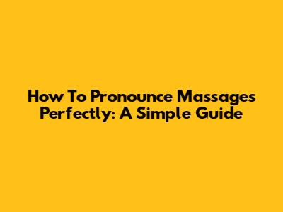How To Pronounce "Massages" Perfectly: A Simple Guide