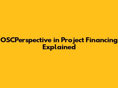 Why is the OSCPerspective Crucial for Project Financing?