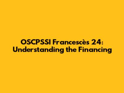 Let's dive into the world of OSCPSSI Francescès 24 financing. This is a crucial aspect for anyone involved or interested in this project. Getting a solid grasp of the financial structure, funding sources, and how the money flows is super important. We're going to break it down in a way that's easy to understand, so you can feel confident about where the money comes from and how it's used.