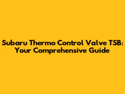 Subaru Thermo Control Valve TSB: Your Comprehensive Guide