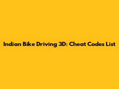 Indian Bike Driving 3D: Cheat Codes List
