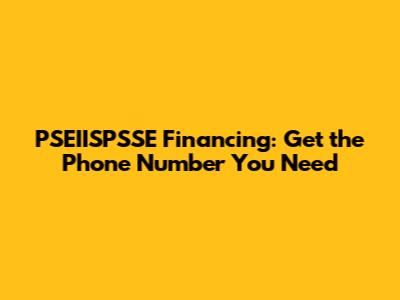 Finding the PSEIISPSSE Financing Phone Number