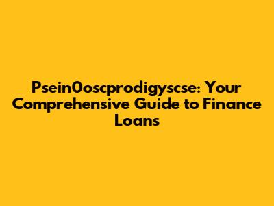 Hey guys! Are you looking to navigate the world of psein0oscprodigyscse finance loans? You've come to the right place! Understanding the ins and outs of these financial products can seem daunting, but don't worry, we're here to break it all down for you. Whether you're a student, a professional, or just someone looking to invest in their future, knowing your options is key. Let's dive deep into what psein0oscprodigyscse finance loans are all about, how they work, and how you can make the best decisions for your financial well-being.
