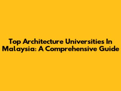 Top Architecture Universities In Malaysia: A Comprehensive Guide