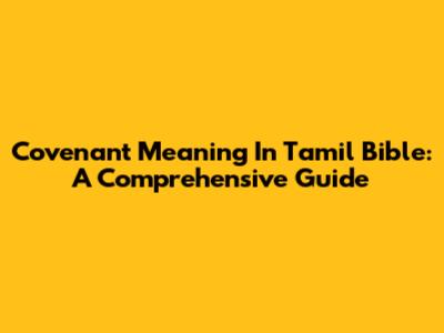 Covenant Meaning In Tamil Bible: A Comprehensive Guide