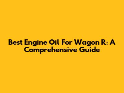 Best Engine Oil For Wagon R: A Comprehensive Guide