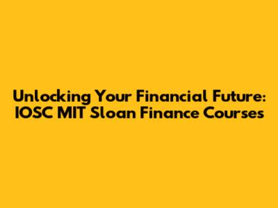 Unlocking Your Financial Future: IOSC MIT Sloan Finance Courses