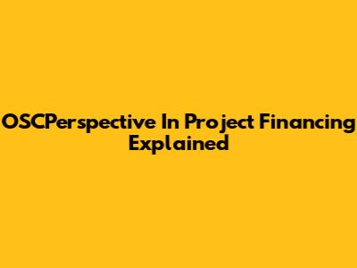 OSCPerspective In Project Financing Explained
