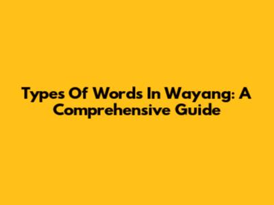 Types Of Words In Wayang: A Comprehensive Guide