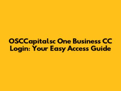 OSCCapitalsc One Business CC Login: Your Easy Access Guide