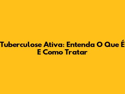 Tuberculose Ativa: Entenda O Que É E Como Tratar