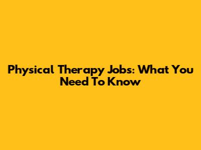Physical Therapy Jobs: What You Need To Know