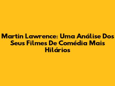 Martin Lawrence: Uma Análise Dos Seus Filmes De Comédia Mais Hilários