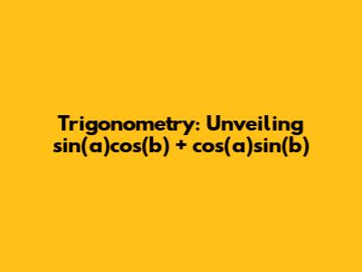 Hey guys! Let's dive into the fascinating world of trigonometry and explore a cool concept: understanding and solving the expression sin(a)cos(b) + cos(a)sin(b). It might look a bit intimidating at first, but trust me, it's totally manageable! This is super useful, especially when dealing with angles and their relationships. We're going to break it down step-by-step, making sure you grasp the fundamentals and can confidently tackle problems like finding the value of this expression when given specific angle values. So, grab your calculators (or your brains!) and let's get started. We will also learn about the sine addition formula, which this expression relates to. The sine addition formula is a fundamental trigonometric identity. It helps us find the sine of the sum of two angles. Specifically, it states that sin(a + b) = sin(a)cos(b) + cos(a)sin(b). This formula is incredibly useful in various areas of mathematics, including calculus, physics, and engineering. It's used to solve problems involving wave functions, oscillations, and rotations. For example, when you are studying physics, this knowledge will become very helpful. Remember this formula when calculating the waves and oscillations.