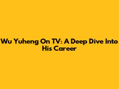 Wu Yuheng On TV: A Deep Dive Into His Career