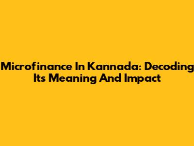 Microfinance In Kannada: Decoding Its Meaning And Impact
