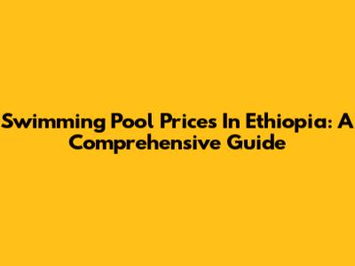 Swimming Pool Prices In Ethiopia: A Comprehensive Guide