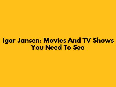 Igor Jansen: Movies And TV Shows You Need To See