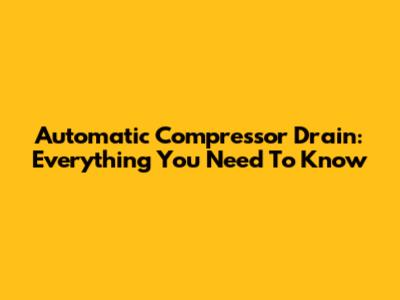 Automatic Compressor Drain: Everything You Need To Know